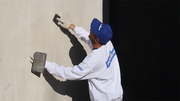 Revoque plástico impermeable formulado con polímeros acrílicos.